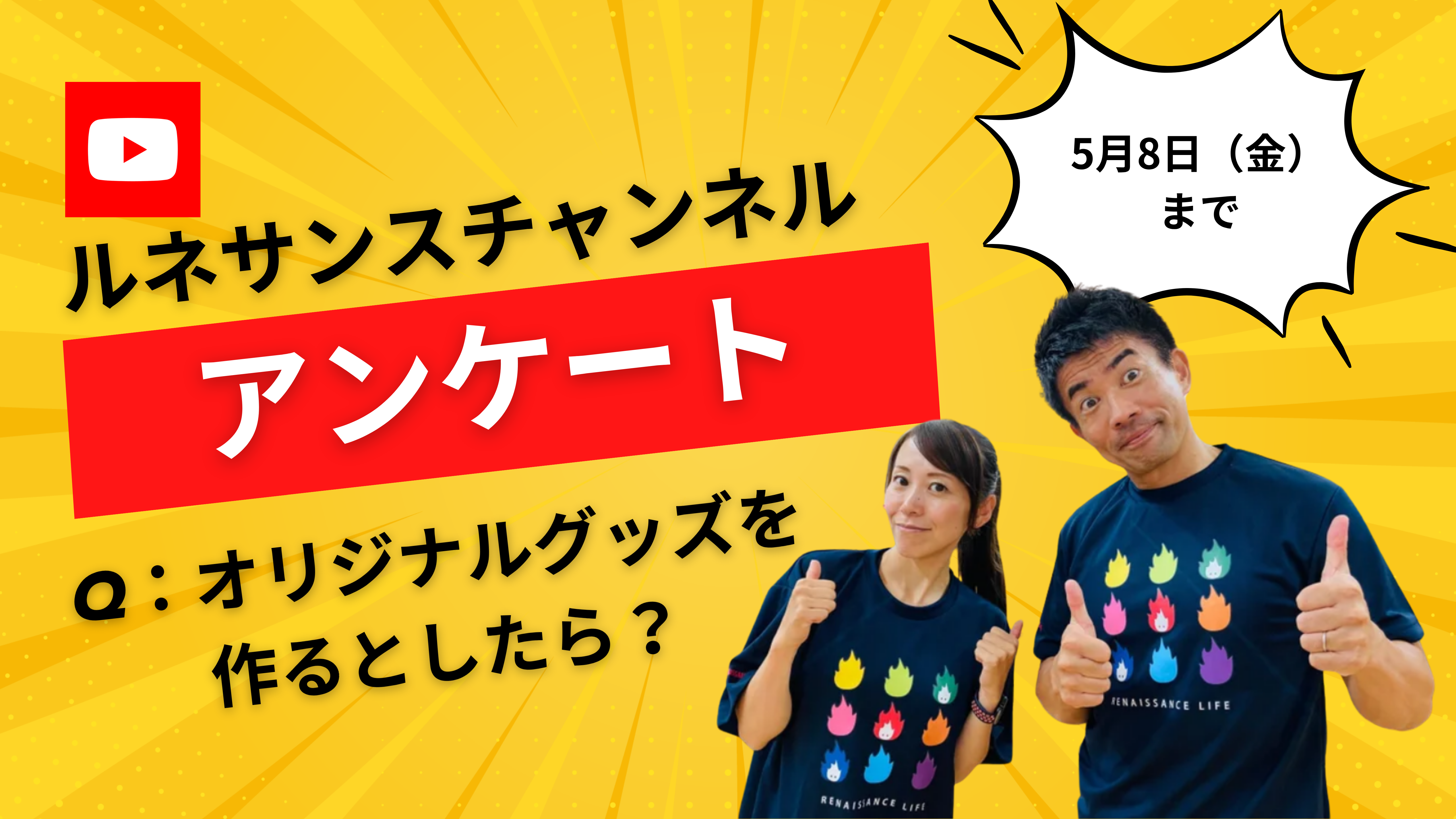 トップ > ルネサンスより > ルネサンスチャンネル > 【5月8日(金)まで】教えて♪ルネサンスチャンネル オリジナルグッズを作るとしたら? FUKU@ルネチューバー 2026/04/24 15:05 【5月8日(金)まで】教えて♪ルネサンスチャンネル オリジナルグッズを作るとしたら? NON @ルネチューバー ルネチューバーのFUKUです(^^)/ 今回は皆さんのお声をお伺いしたく投稿しました♪ タイトル通り 「ルネサンスチャンネル オリジナルグッズ を作るとしたら?」 です✨ まだ実現できるかどうかもわからない 企画段階ですが、皆さんのお声を大いに 参考させていただこうと考えております(^^) お手数をおかけしますが 以下のバナーをクリックしていただき、ご回答いただけると嬉しいです)^o^( ↓こちらをクリック♪ ルネサンスチャンネル アンケート オリジナルグッズ いいね 共有する 共有する X facebook LINE リンクをコピー コメントする 1 件の返信 (新着順) ミュートしたユーザーの投稿です。 投稿を表示 はる 2026/04/24 19:53 NON @ルネチューバー FUKU@ルネチューバー Tシャツとタオルで悩みましたー💦 みんなでお揃いのTシャツ着てルネダンス踊ったら楽しそう🕺ってダンス苦手だけど妄想しました💕 でも色んな場面で使えるのはタオルかな🙌 実現するの楽しみにしています😋 いいね 返信する