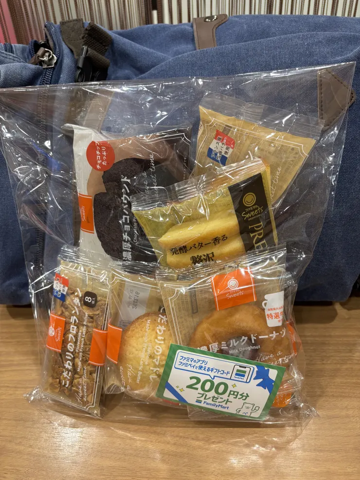 今日入っているものは青砥駅ファミマで1,576円分のスィーツが1,000円しかも200ポイントもらえるのが販売されているので3つ購入。全てわたしがいただくのではなく、今週末にマラソンの給水係を担当するのですがはじめましての方々と5-6時間立っているので途中おやつ🍪にみなさまに配るのです。