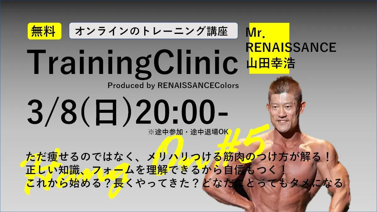 予告【無料】オンラインイベントMr.ルネサンス山田幸浩による『トレーニングの基礎を学ぶ』“Hang On#5”開催!