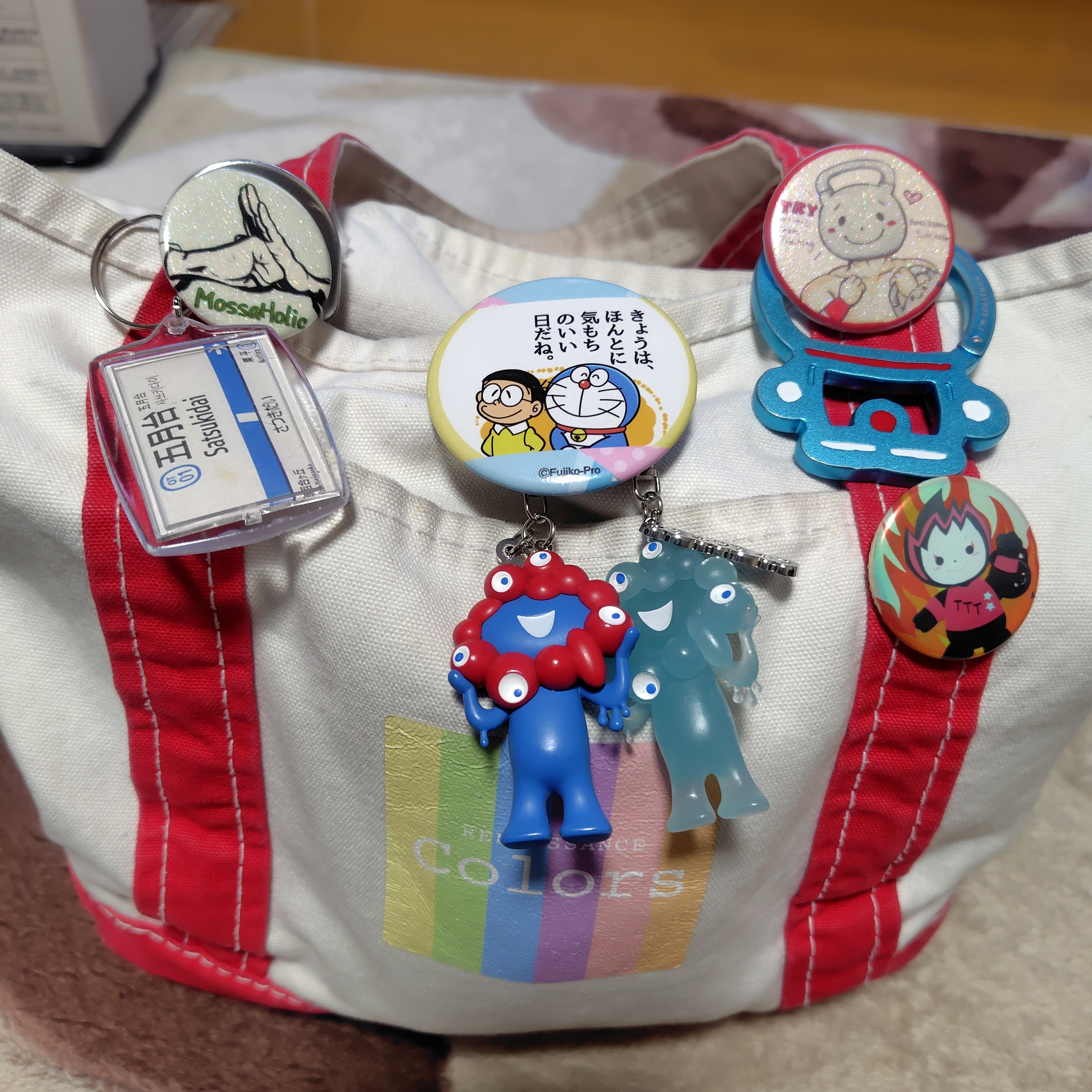 1.バッヂは、相方さんのアイコン、ケトルベルコン君等。五月台キーホルダーは、リカヒコさんお手製。