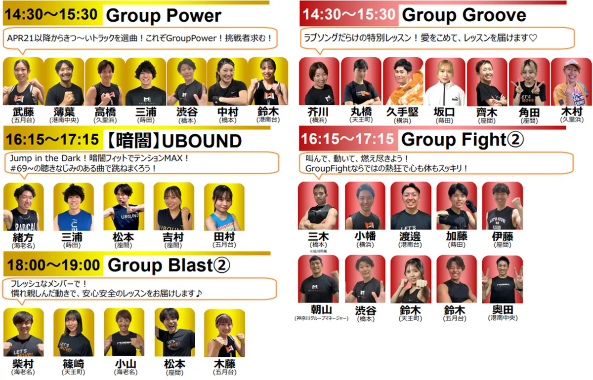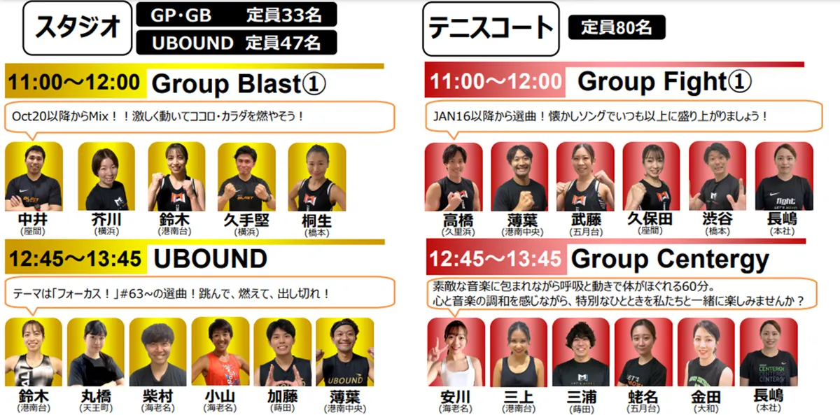 ・ イベント当日は、事前予約がある方が追加予約される場合に限り、 各レッスン開始時刻30分前まで承ります。(要事前入金)