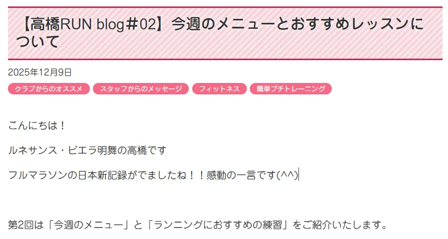 今週は「今週のメニュー」と「フルマラソンやハーフマラソンの完走~タイムの向上を狙う上で、おすすめなトレーニング3選」