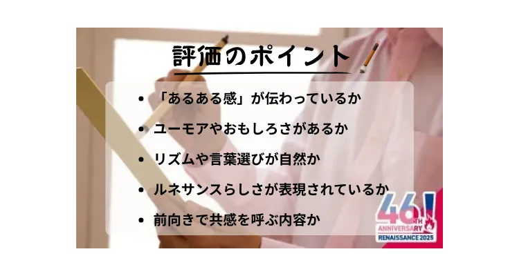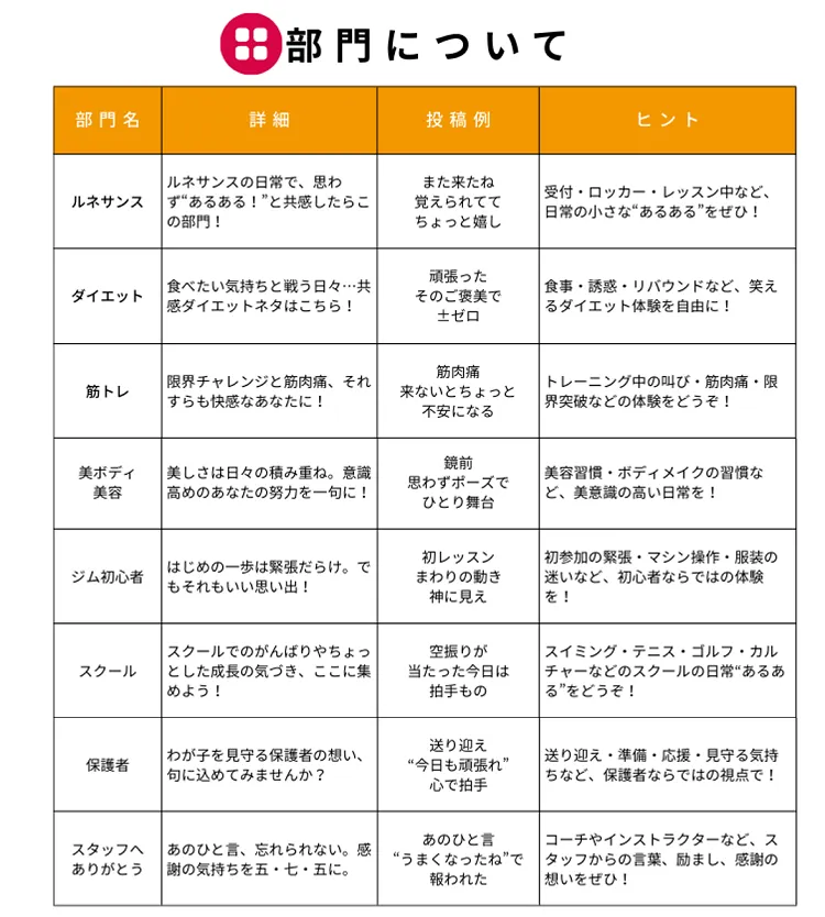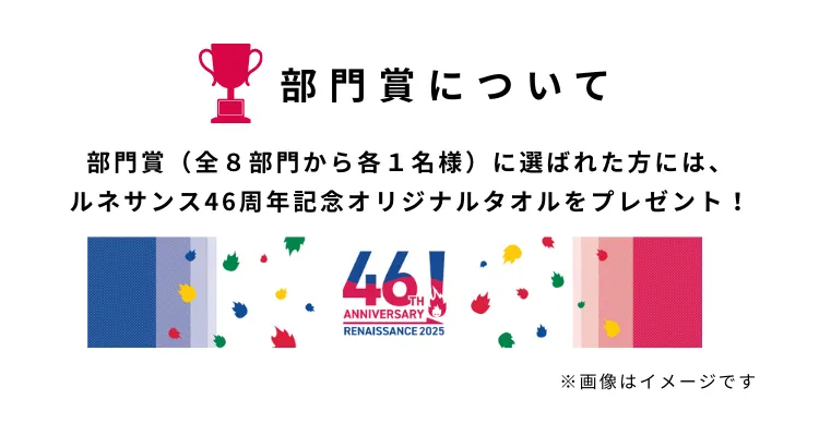 応募作品の著作権は応募者に帰属します。ただし当社は、応募作品をルネサンス館内での展示やチラシ、公式ウェブサイト、SNS等において、無償で使用させていただく権利を有します。